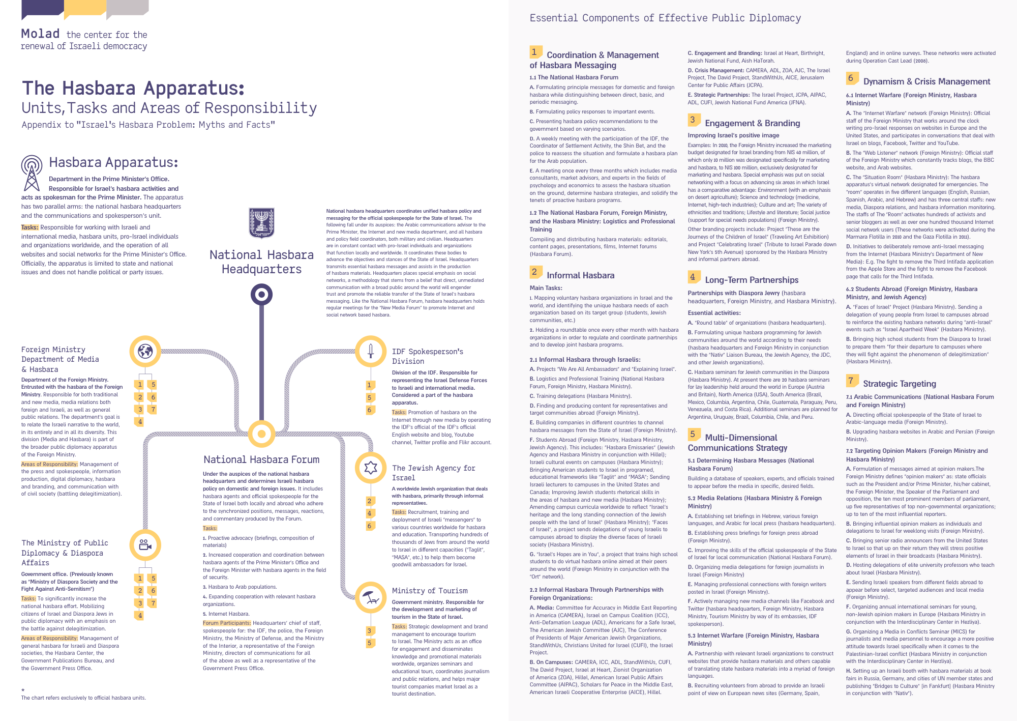 Both the public and private sectors are deeply involved in the practice. In addition to the MFA, the Israeli army’s spokesperson division, the Jewish Agency for Israel, and privately-funded organizations operating abroad like StandWithUs and Christians United for Israel are all tasked with disseminating pro-Israel propaganda.